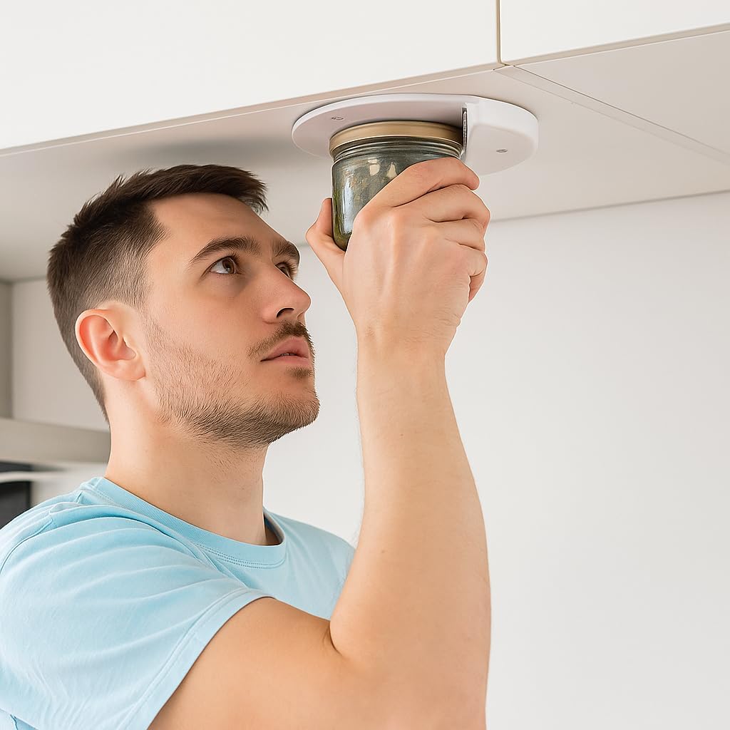 Fingers-Free Jar OpenerEasy Grip Jar OpenerHidden Jar OpenerUnder cupboard lid removerHeavy obligation jar openerKitchen gadget for seniors