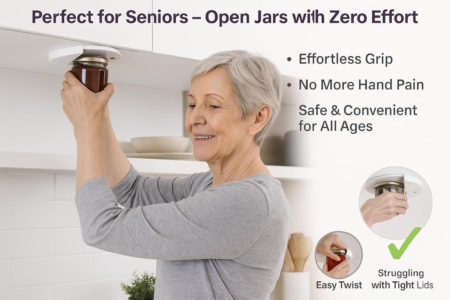 Guide opener for caught lidsJar opener for elderlyJar opener for arthritis sufferersSenior kitchen toolAdaptive kitchen toolArthritis-friendly jar opener