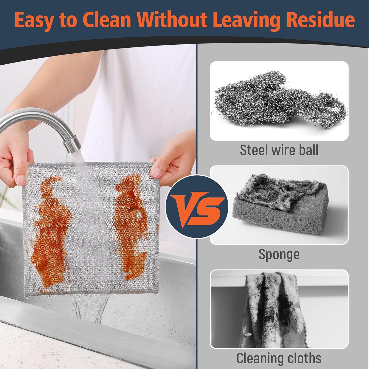 【No Scratches】This multipurpose non scratch wire dishcloths is made of soppy and delicate materials, designed particularly for caring for the floor of cooking utensils,serving to to reduce the chance of scratches.