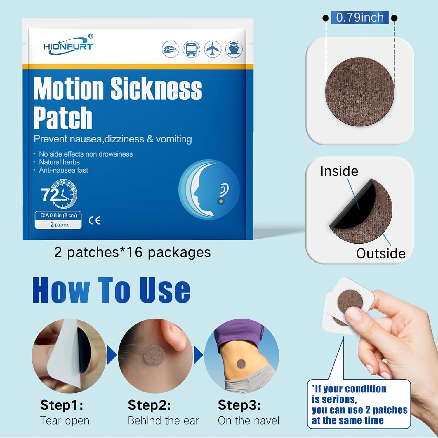 【Wholesome and Efficient】Movement illness ear patches are made from 100% natural drugs elements, that are wholesome, gentle and don’t have any unwanted side effects. In contrast with conventional tablets, movement illness patch behind ear doesn’t include sleeping elements, it’s not drowsy