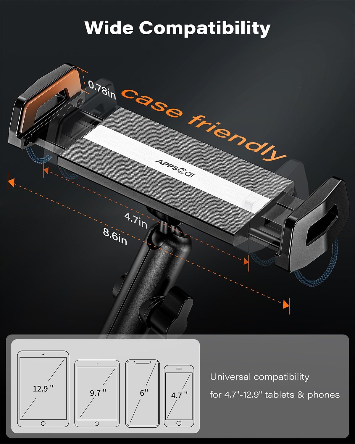 Adjustable Alloy Arm: This pill automotive mount has a three-pivot ball head adjustment that enables flexibility to adjustment any angle by adjusting the knob on the arm. It holds the mount firmly to the arm whereas sustaining the pliability within the higher and decrease ball joints to maximizing your viewing expertise.
