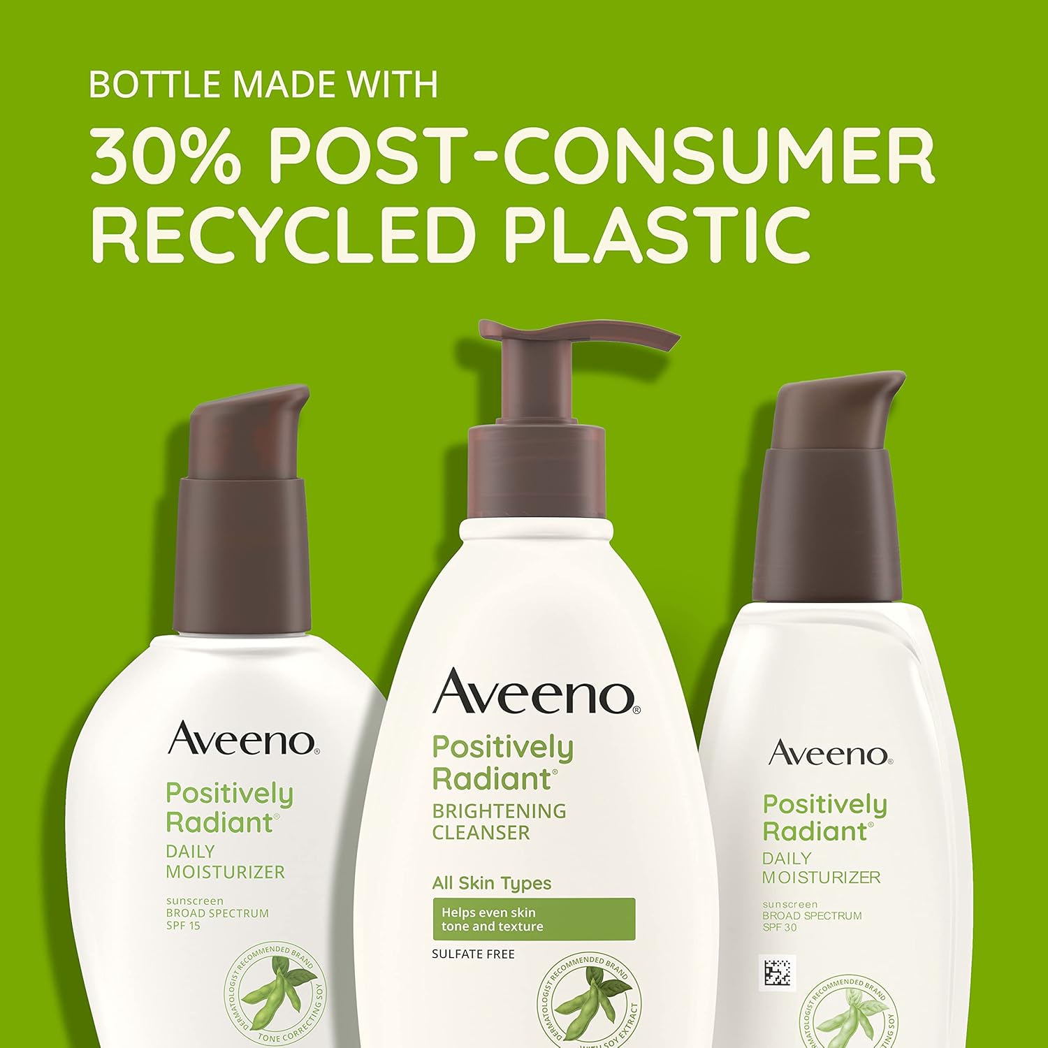 Face Moisturizer: One 4 fl oz bottle of Aveeno Positively Radiant Face Moisturizer with SPF 15 Sunscreen with clinically confirmed tone-correcting soy visibly evens pores and skin tone and texture.