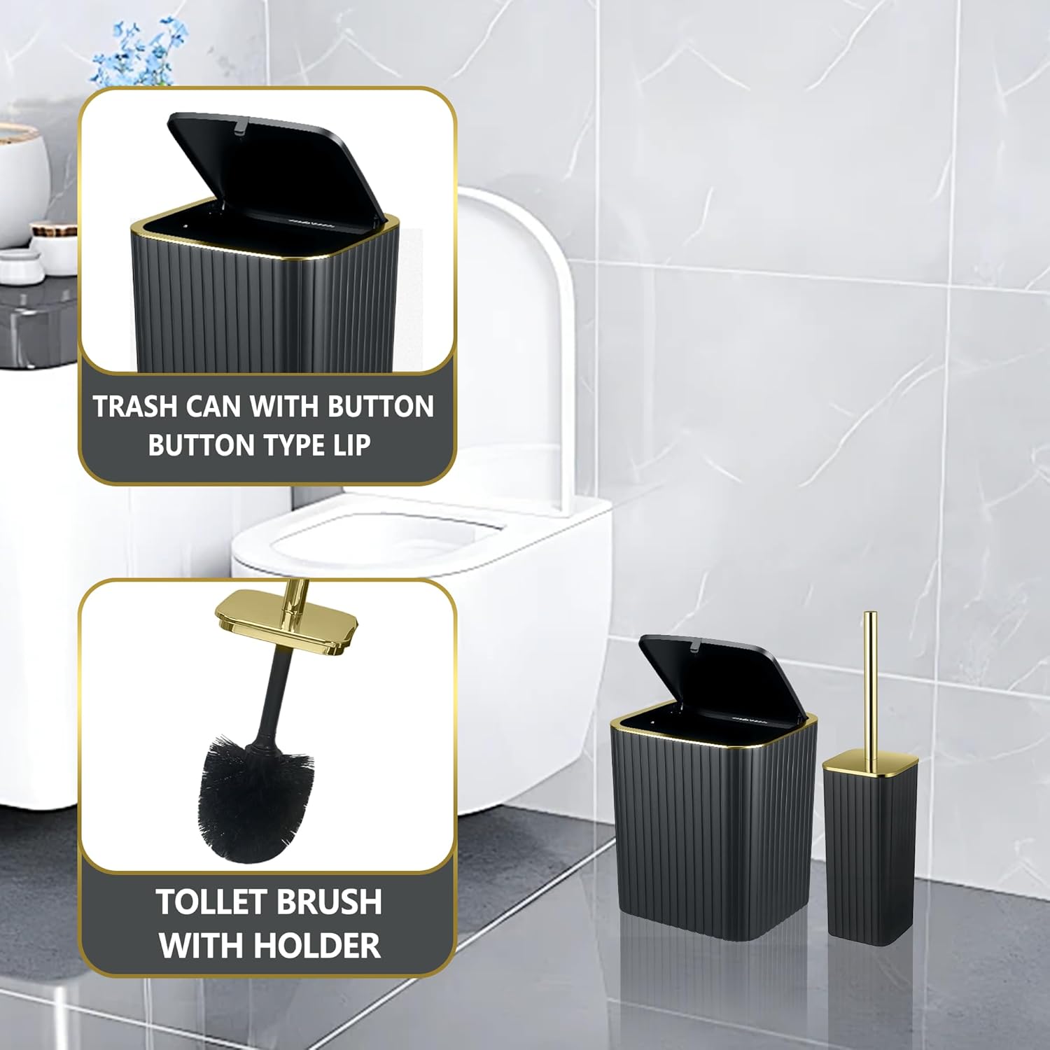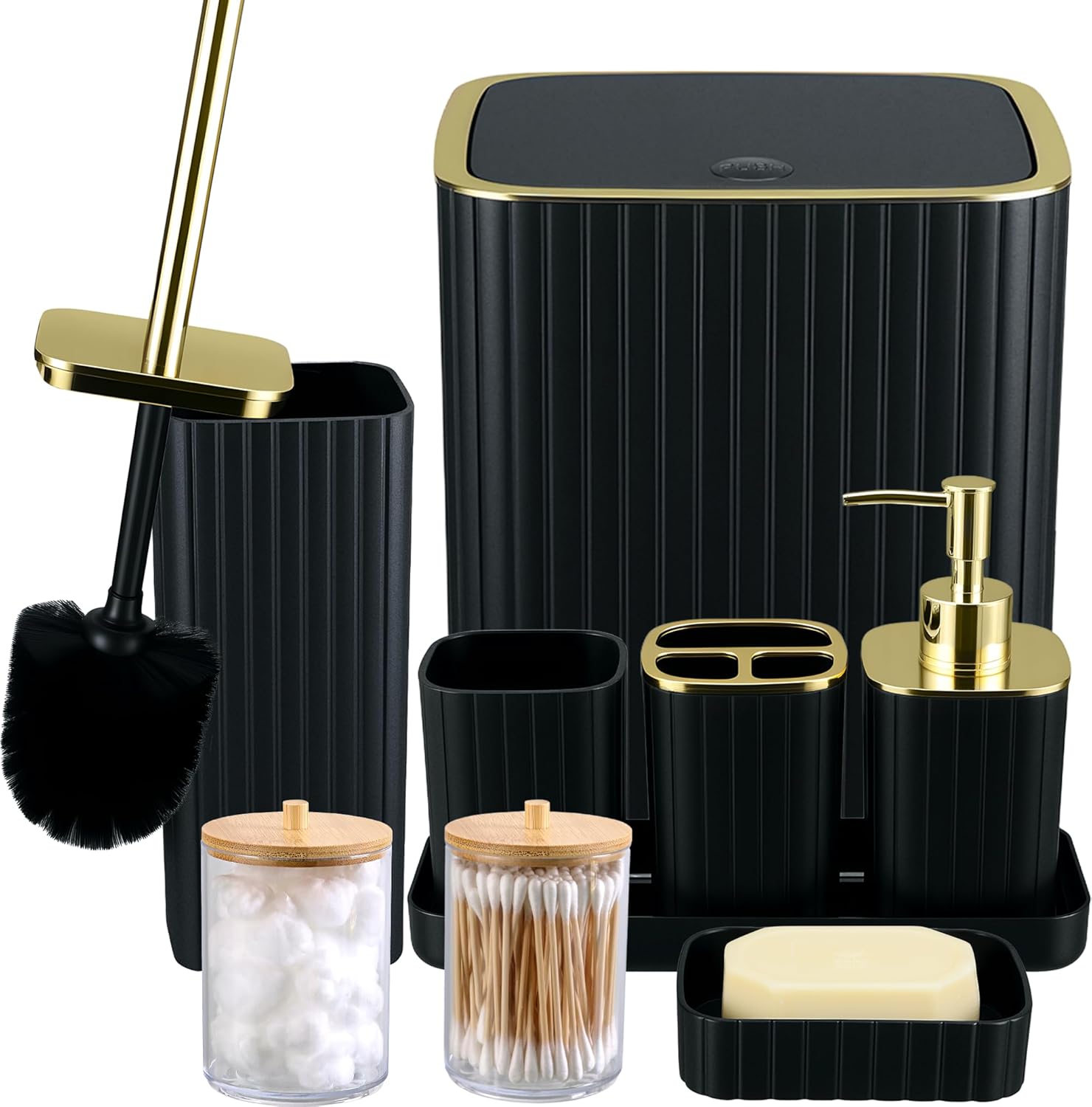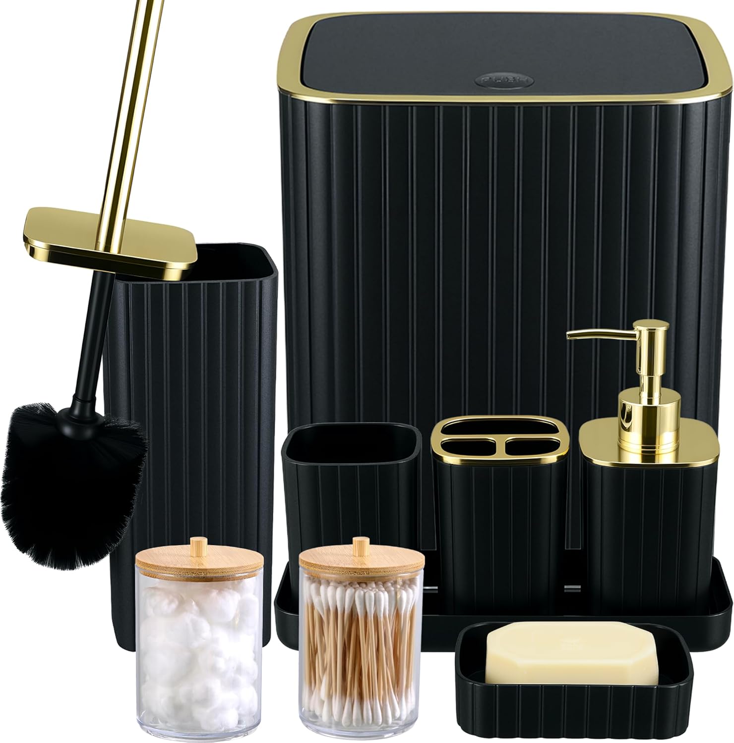 【 COMPLETE 9-PCS BATHROOM SET 】: This all-in-one set consists of cleaning soap dispensers, a toothbrush holder, tumbler, self-importance tray, cleaning soap dish, bathroom brush, trash can, and (2) multi-use plastic jars. Crafted from high-quality, thick & sturdy plastic, this set is constructed to withstand each day put on and tear, guaranteeing long-lasting sturdiness and simple cleansing for a perpetually recent lavatory.