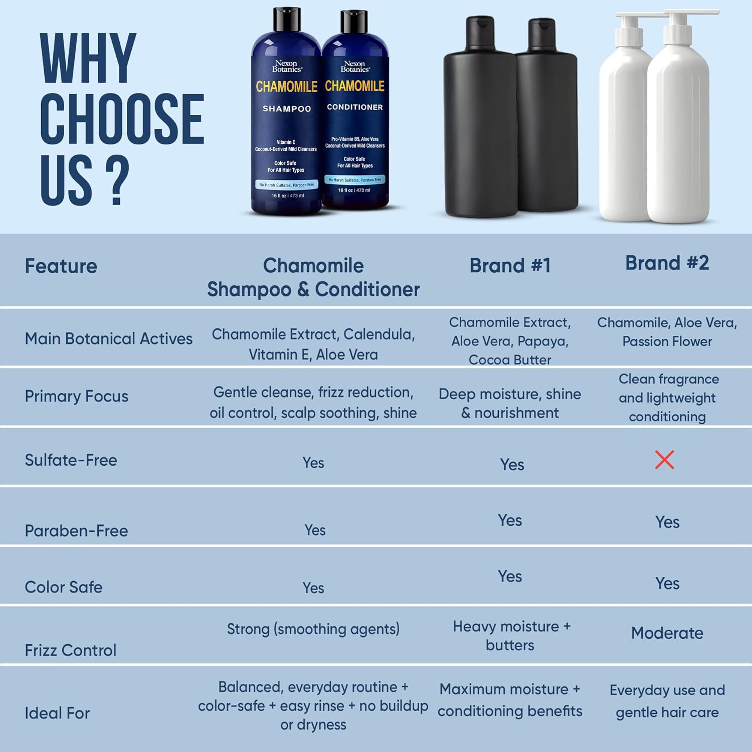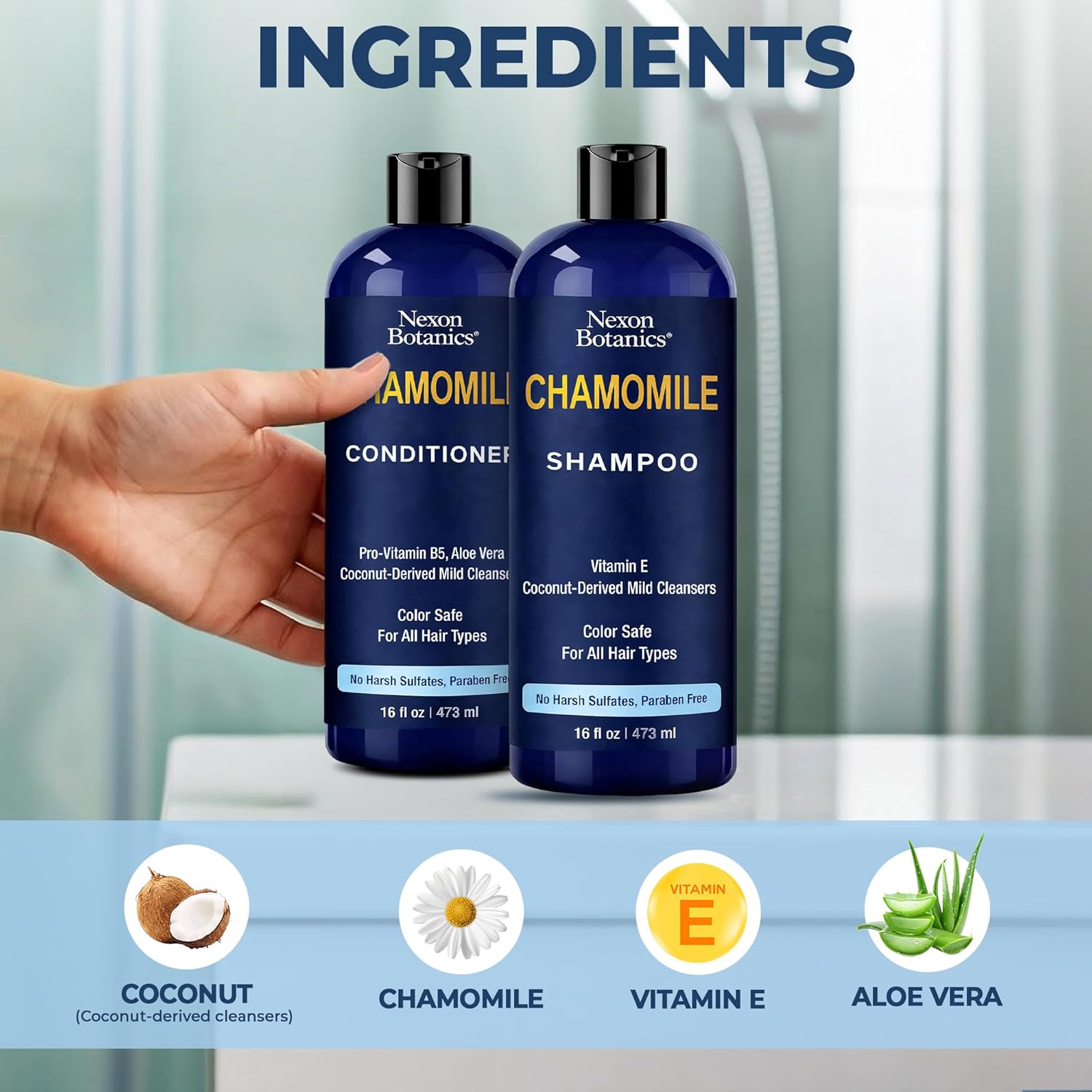 Chamomile Shampoo and Conditioner Set 16 fl oz – Clarifying and Deep Cleaning Take care of Oily Hair – Frizz Management, Smoothing and Colour Secure – Champu de Manzanilla – Nexon Botanics