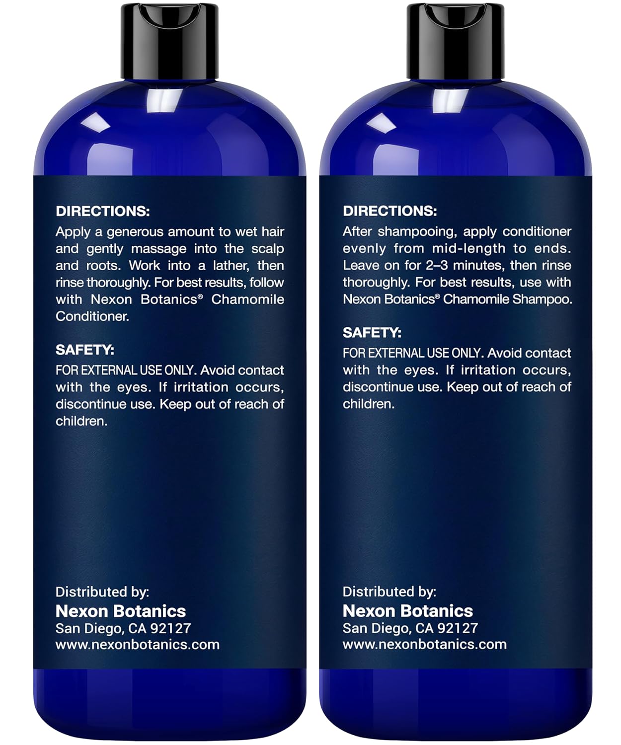Each bottle in the Chamomile Shampoo and Conditioner Set contains 16 fl oz.