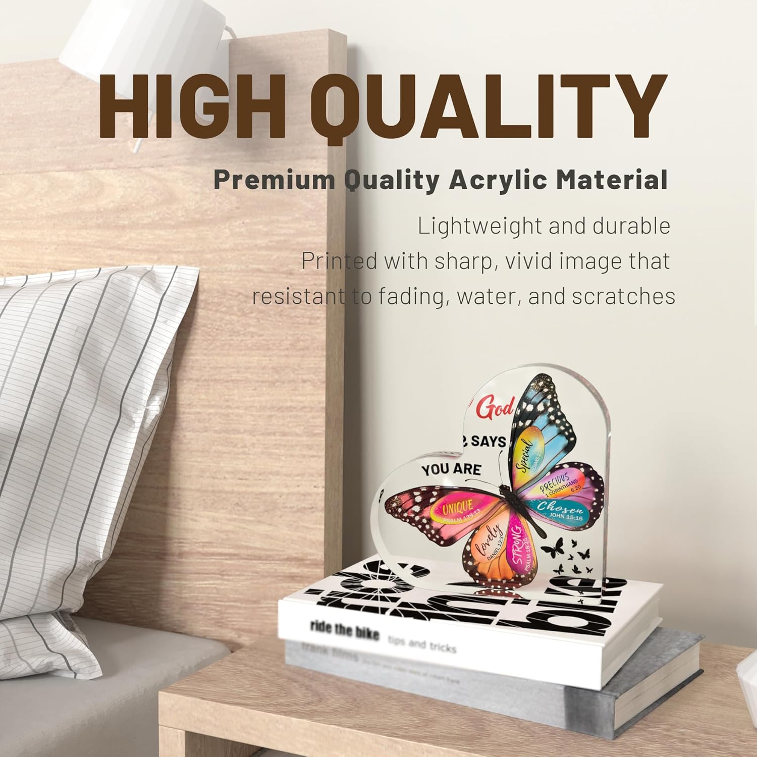 Excessive-High quality Acrylic Christian Decor: Constructed from premium, non-yellowing acrylic with a UV-printed butterfly sample that’s vivid, sharp, and fade-resistant. Sturdy, water- and scratch-proof, perfect for desks, cabinets, or workplace shows.