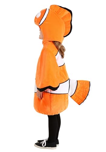 Complete Nemo look: This costume includes a minky headpiece with a fiber-filled face and delicately embroidered features, ensuring a snug fit with a hook and loop fastener under the chin. Perfect for Halloween, themed parties, or imaginative play as fans embody the spirited character from the deep blue sea.