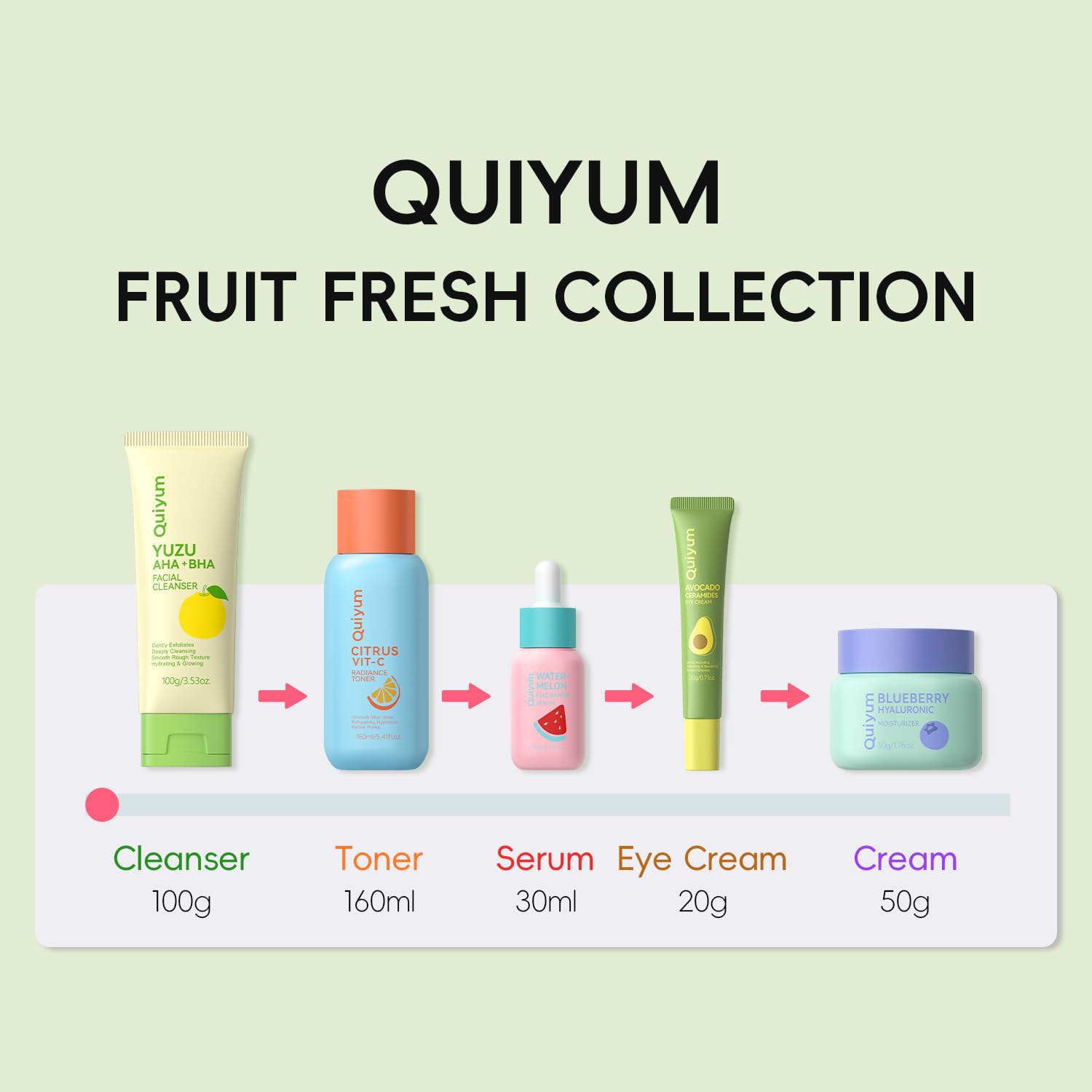 🍉Full 5-Step Skincare Routine – Uncover your new skincare necessities with the QUIYUM Care Skincare Set. This 5-in-1 set consists of Watermelon Serum 1.01 fl oz, Citrus Vitamin C Toner 5.41 fl oz, Yuzu Cleanser 3.53 oz, Avocado Eye Cream 0.71oz and Blueberry Moisturizing Face Cream 1.76 oz. Excellent for rookies and people who wish to replace their every day skincare routine, this set gives a complete every day care resolution.