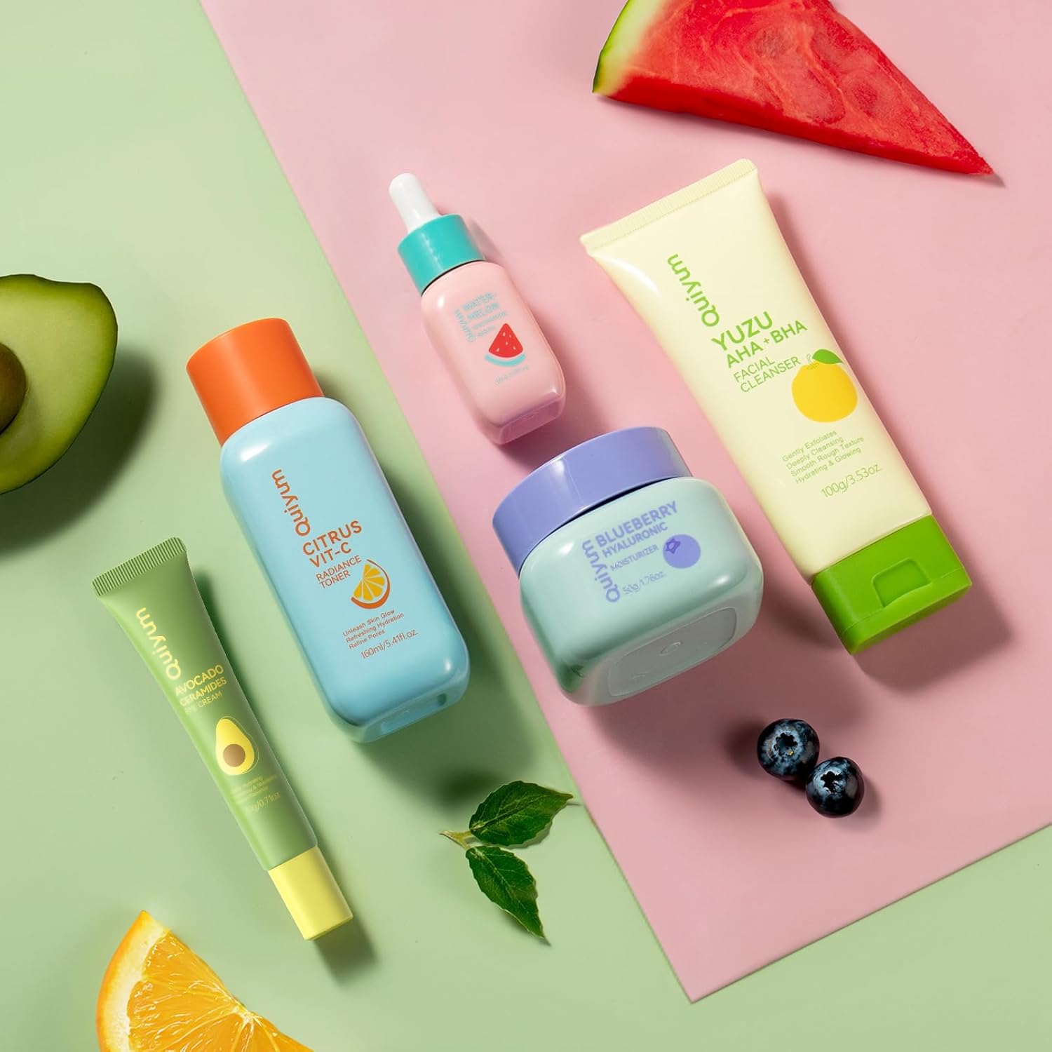 🥑Nourishing Pores and skin-Pleasant Components – Every product comprises high-quality substances to reinforce your skincare routine. Yuzu Cleanser cleanses and hydrates. Citrus Vitamin C Toner controls oil and moisturizes. Watermelon Serum is enriched with watermelon extract and hyaluronic acid to make the pores and skin glow. Blueberry Moisturizing Face Cream with Vitamin E strengthens the pores and skin barrier. Avocado Eye Cream relieves high quality strains and tightens the pores and skin across the eyes.