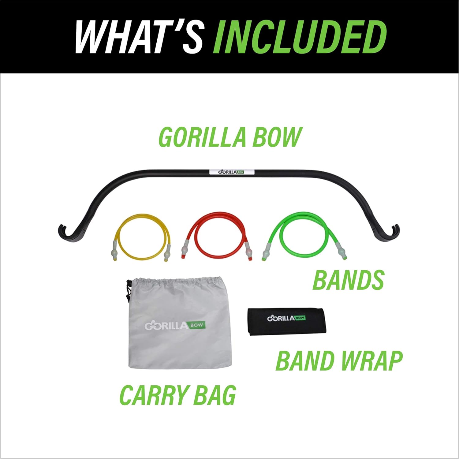 What’s Included – Lite Bow, Black, Base Bundle features a full-length 41.5” Bow; (3) Double-Wall Gorilla Bands ((1) 30 lb., (1) 20 lb., (1) 10 lb.); Band Wrap; 30 Days of Gorilla Bow All-Entry Membership