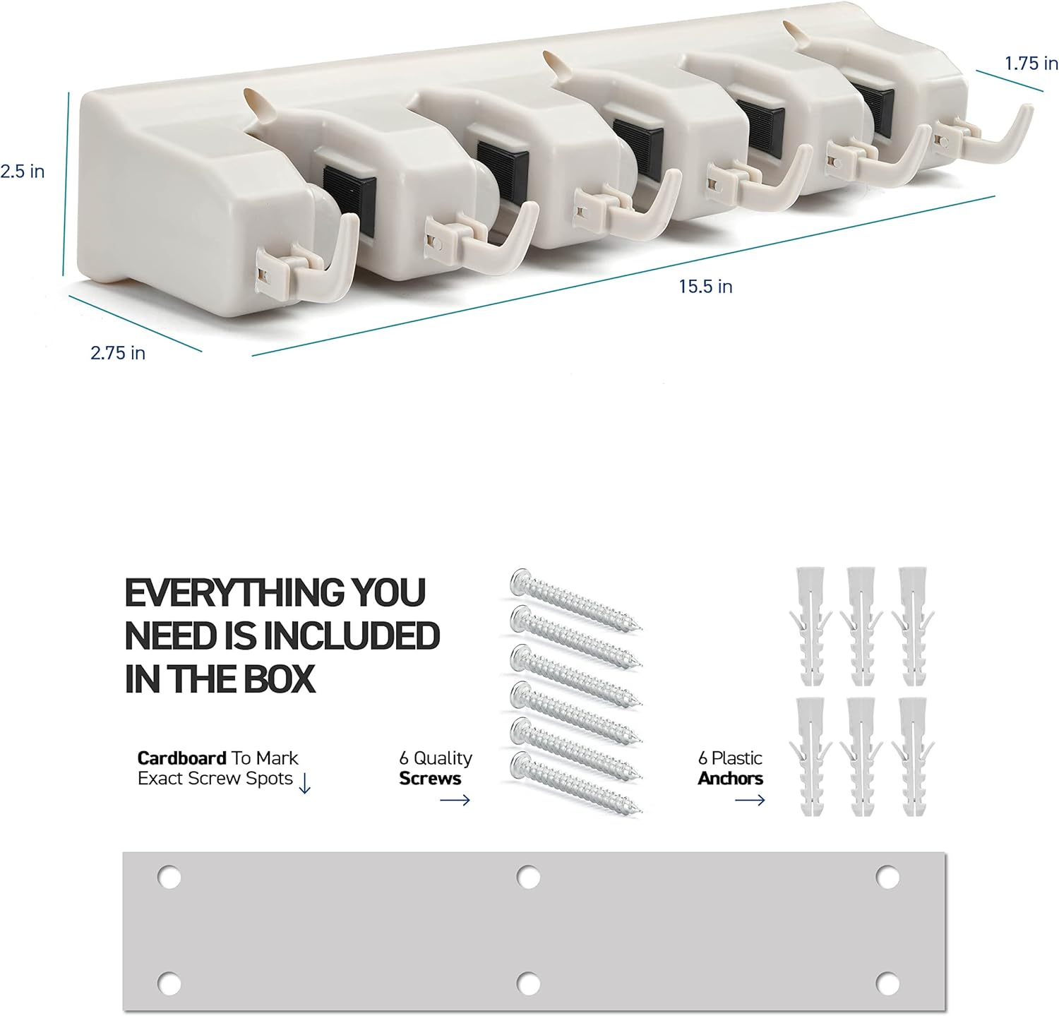 Be the first to review “HOME IT Mop And Broom Holder Wall Mount – Storage Storage Techniques with 5 Slots, 6 Hooks, 7.5lbs Capability Per Slot – Backyard Software Organizer For Residence, Kitchen, Closet, Storage, Laundry Room – Off-White”