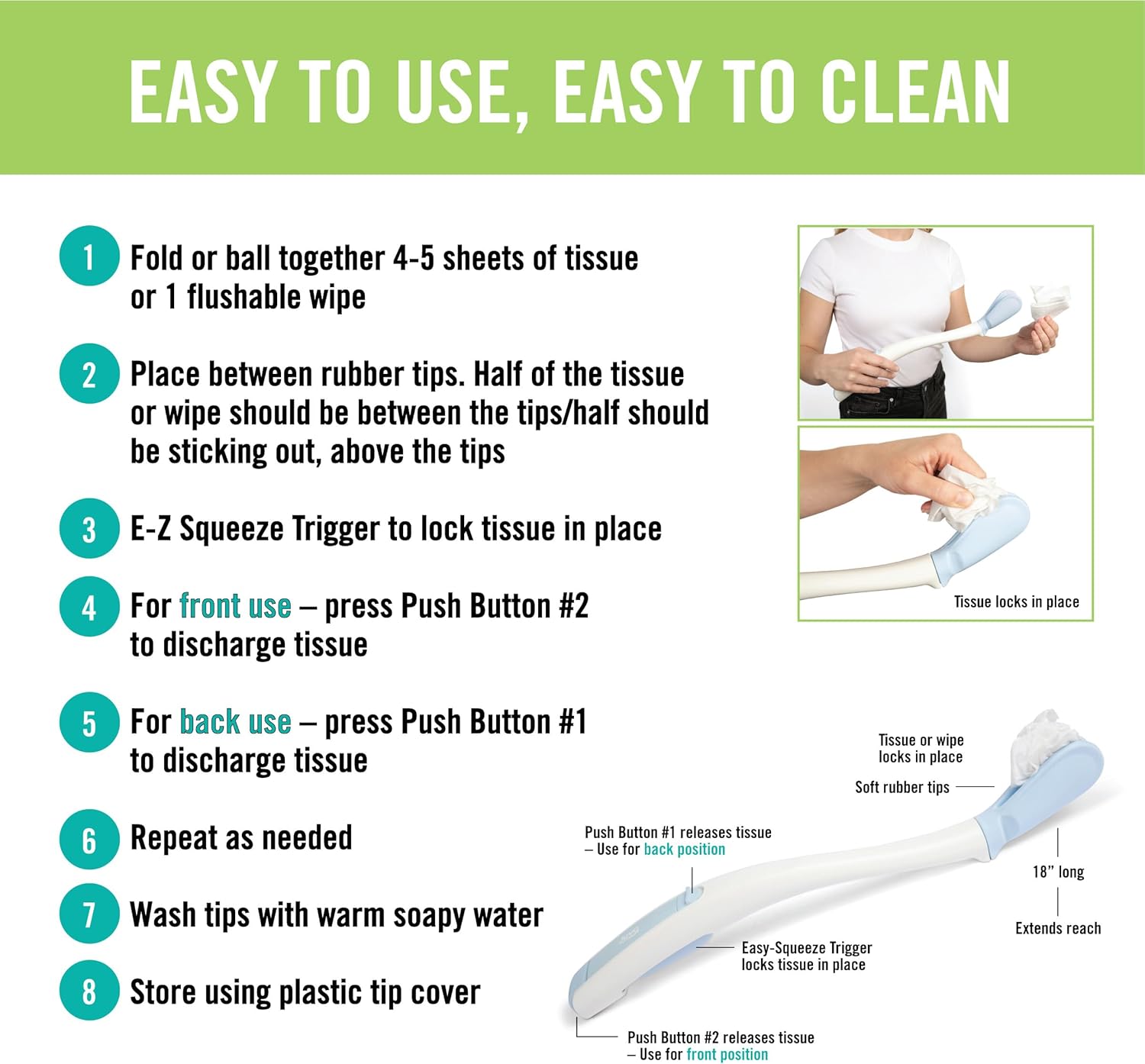 Easy, Protected, Hygienic Push-button tissue launch – NO want to the touch soiled tissue! Minimizes bending, stretching and stooping Designed to make use of reaching from entrance or from again Consolation-Grip and mushy rubber tip Simple squeeze set off rest room tissue or moist wipes securely Extends attain by 20″