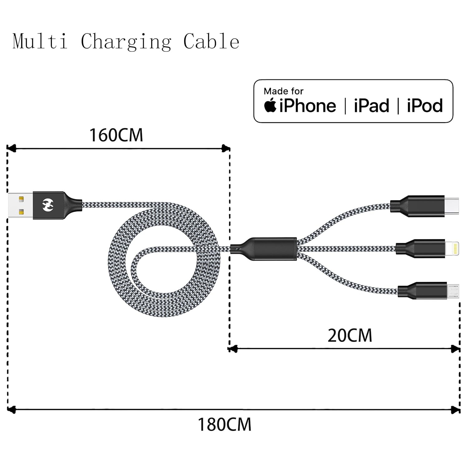 Simplify your life with this USB to a number of connectors cable—a single multicharger charger wire for simultaneous charging of three units. Suitable with all 5V adapters (adapter not included), it effortlessly replaces a number of chargers. Expertise the comfort of a charger 3 in 1 that matches each gadget in your house or workplace