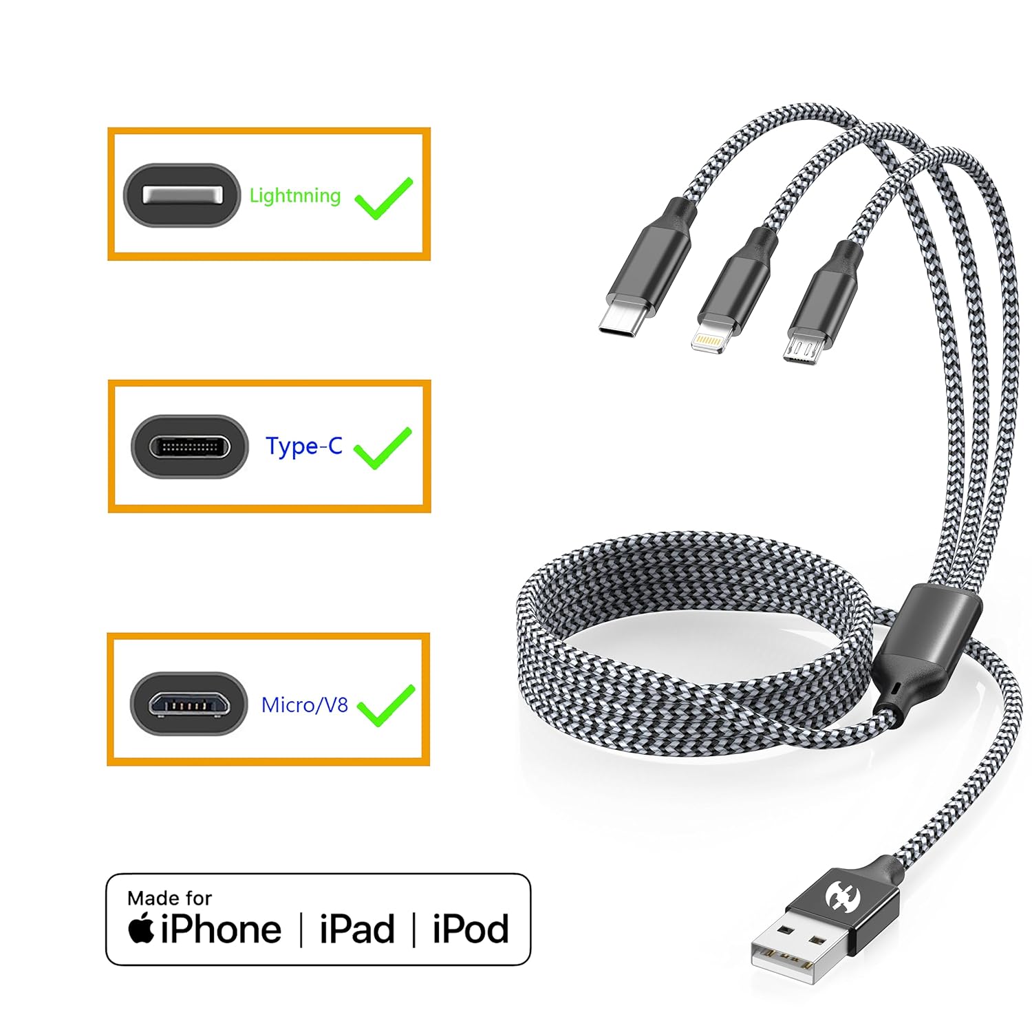 3 in 1 charging cable combines Lightning, Kind-C, and Micro-USB connectors in a single sturdy multi charging cable. Licensed by MFi for security, it delivers quick charging to iPhones, Androids, tablets, and extra—excellent as multi chargers for all units. The bolstered nylon braid prevents fraying, making it your final multi telephone chargers for all units companion