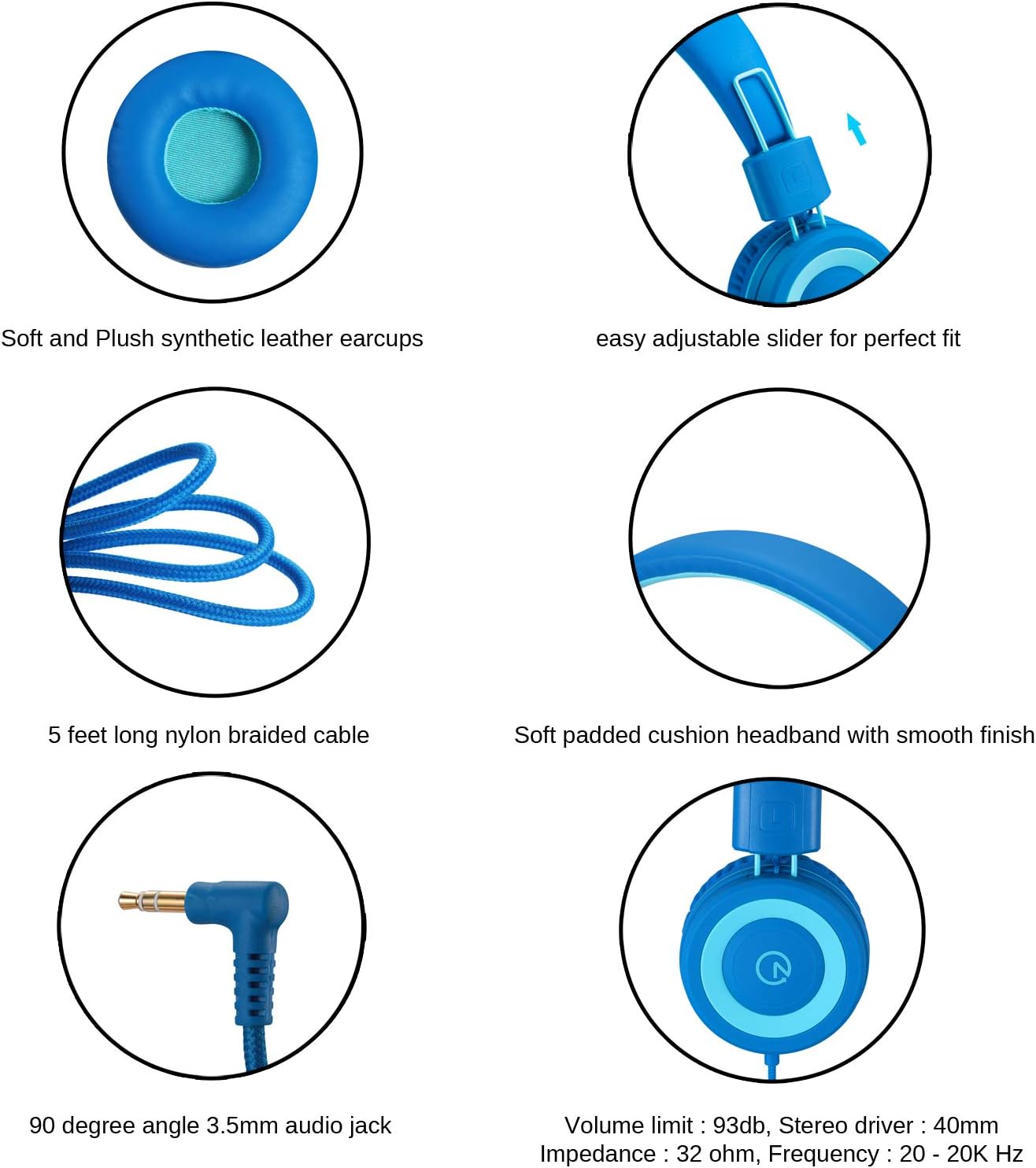 noot merchandise Youngsters Headphones K11 Foldable Stereo Tangle-Free 5ft Lengthy Twine 3.5mm Jack Plug in Wired On-Ear Headset for iPad/Amazon Kindle,Fireplace/Boy/Lady/Faculty/Laptop computer/Pill(Skyline Blue)
