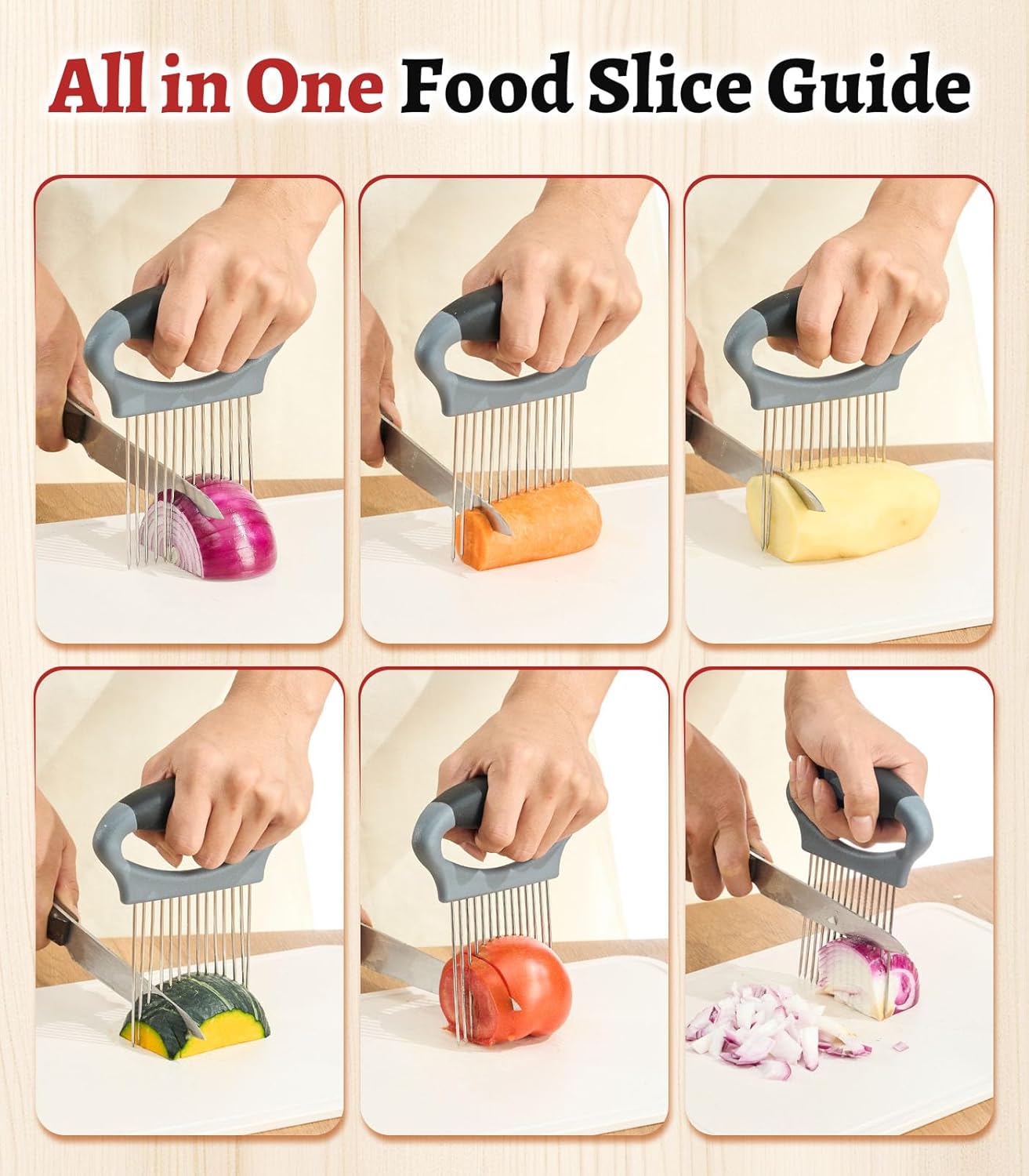 Multi-Function Slicing Software – Works with onions, tomatoes, lemons, potatoes, avocados, eggs, meat, and extra