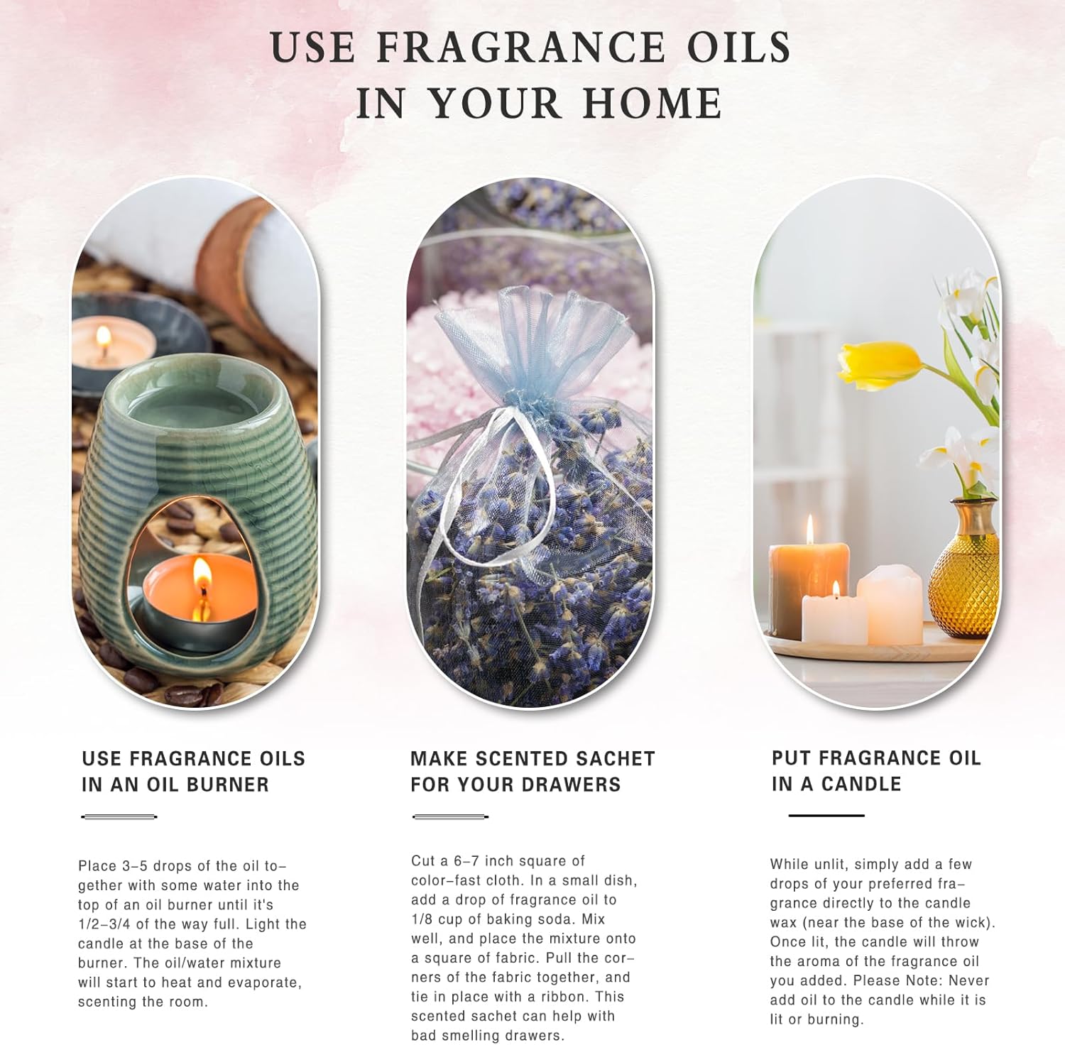 Broad Vary of Makes use of: Our Premium oils are nice for aromatherapy and diffusers, it may also be used for soaps, candle making, therapeutic massage oils, room sprays, bathtub salts and physique washes.