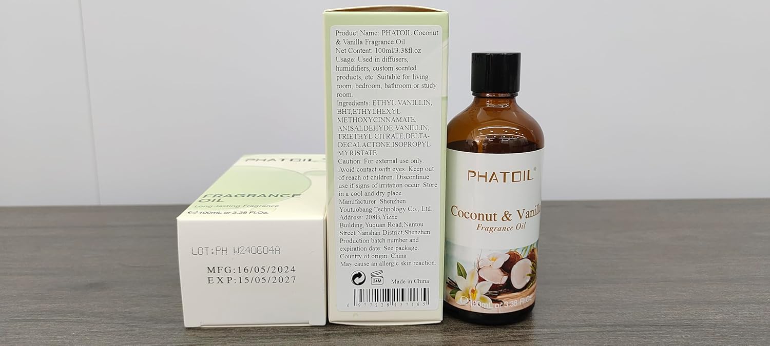 The PHATOIL Coconut & Vanilla Perfume Oils are ideal for aromatherapy, diffusing, yoga, DIY candle making, and soap making.