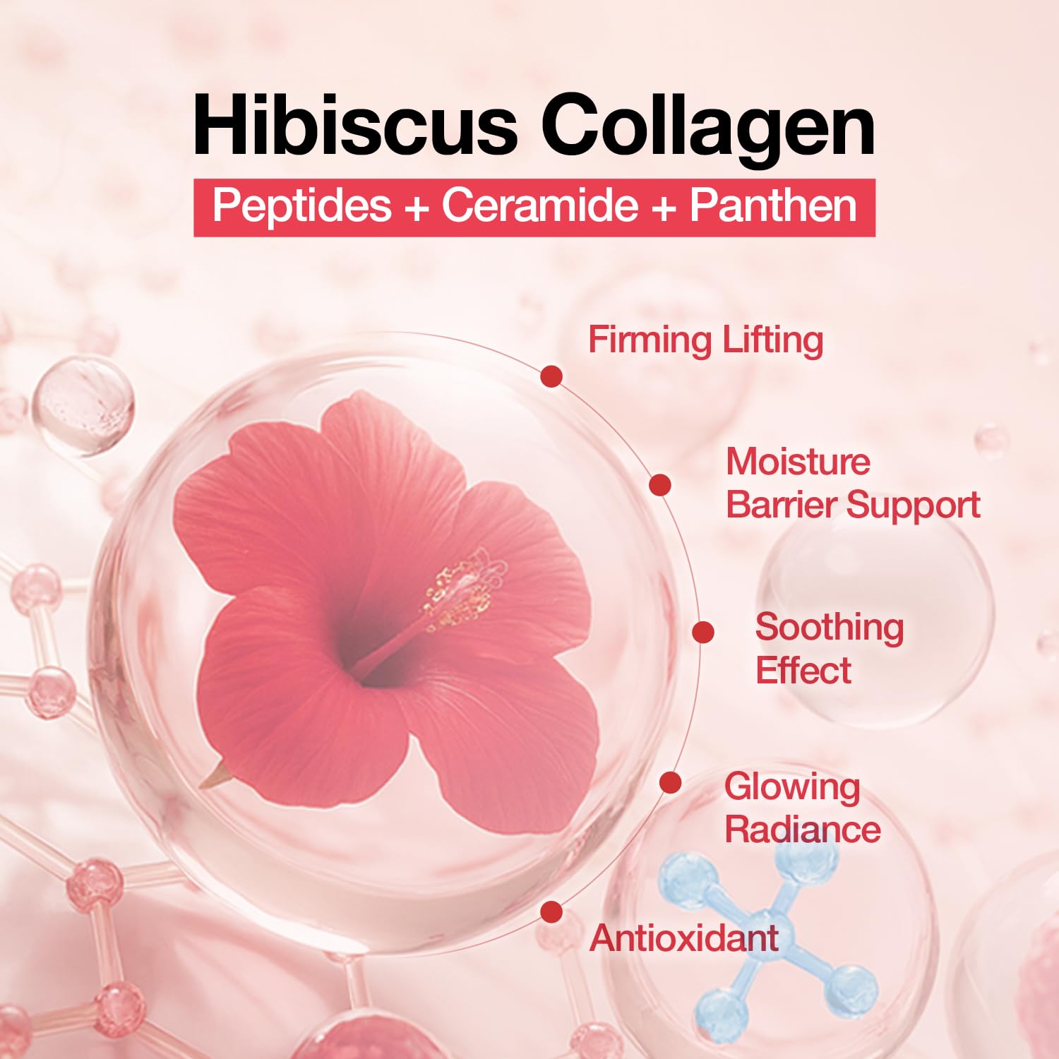 The main ingredient is Hibiscus Collagen, which helps to revitalize the skin.