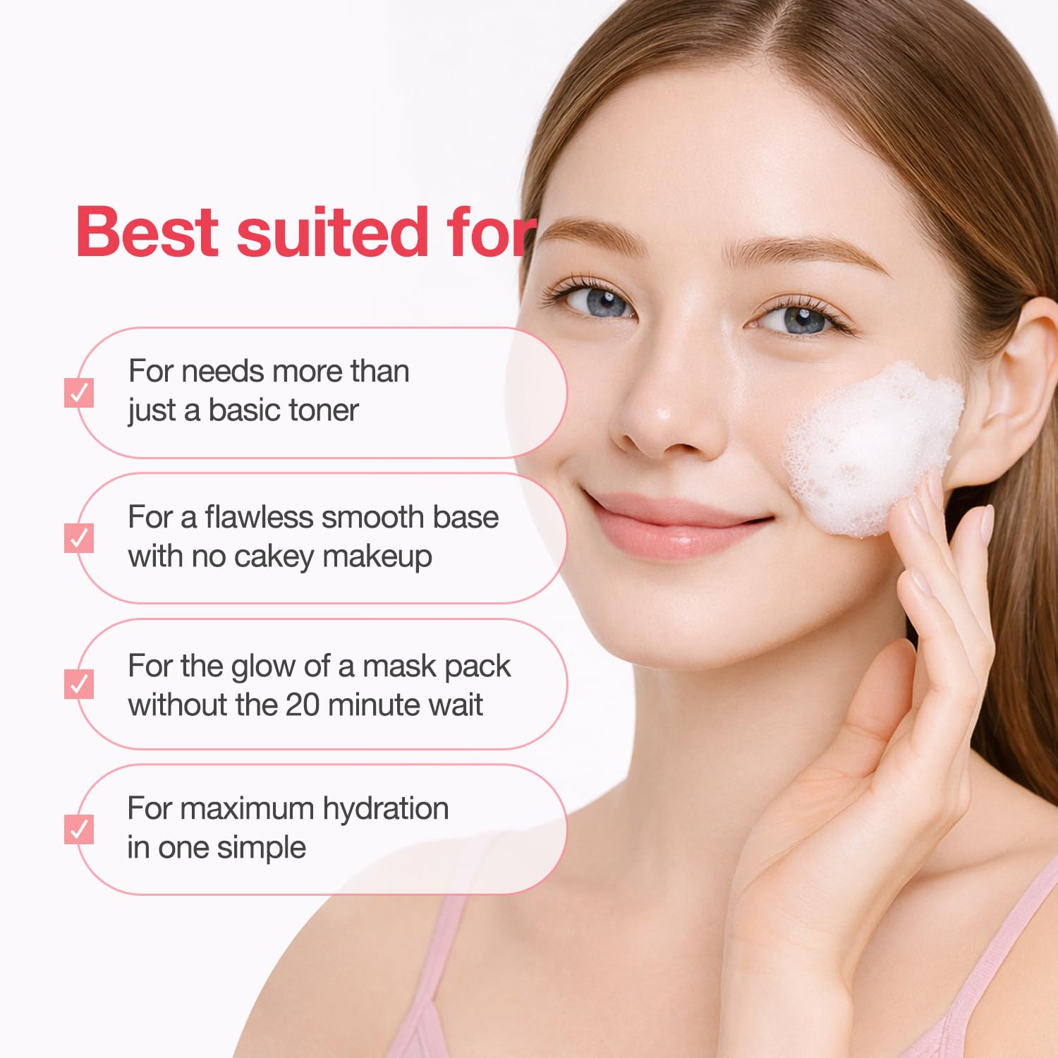 [Zero Residue -Soft Bubble Texture] The ethereal, bouncy bubble texture melts into pores and skin for straightforward software. It supplies focused hydration with out greasiness, making it a super make-up base or refreshing day by day increase.