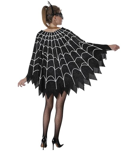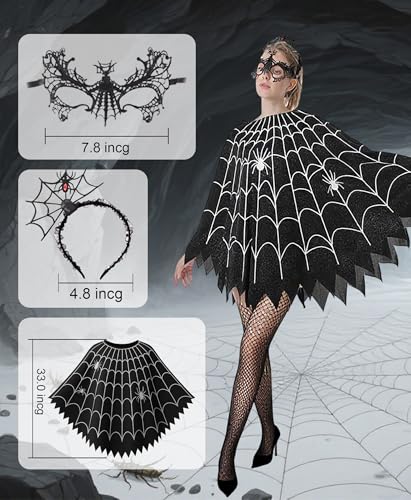 Specification: Spider Internet Poncho for Ladies, Glow within the Darkish Halloween Costume Cosplay Costume with Headband and Masks Outfit