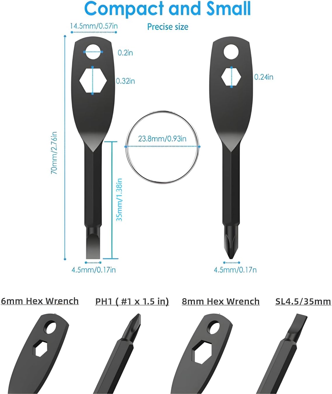 4 in 1 screwdriver units: Pocket screwdriver keychain set features a #1 Phillips screwdriver, Flathead screwdriver, 6 mm hex wrench and eight mm hex wrench, 4-in-1 Multi Design can meet your totally different wants, Very humanized and sensible