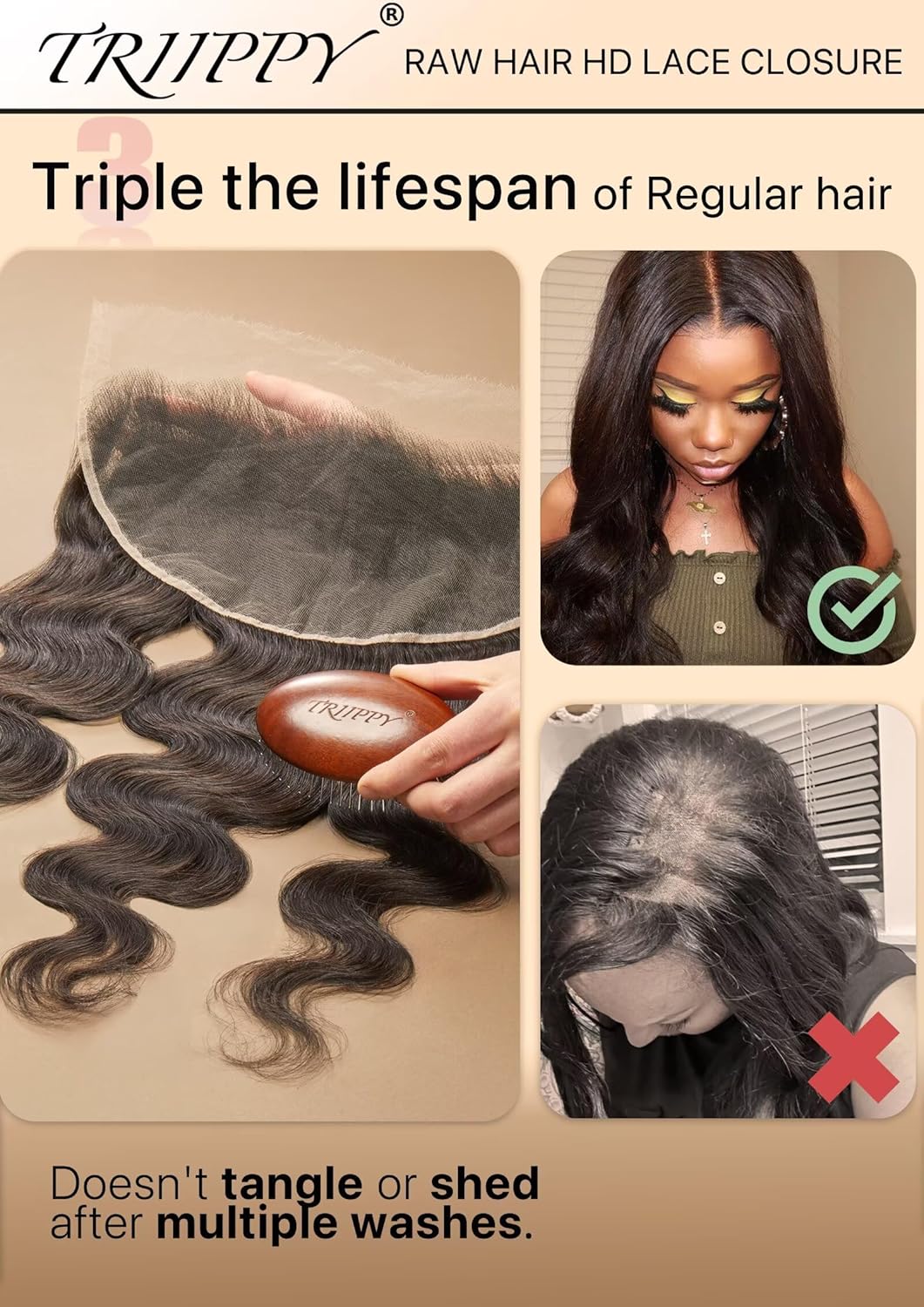 ⚫Triippy Model Positioning⚫Triippy Sells Solely Excessive Finish Uncooked Hair Merchandise, Utilizing Solely 0.10mm Extremely-Skinny Swiss Actual HD Lace For The Closures, Which Blends Completely With All Pores and skin Tones, NO.1 Gross sales of Uncooked Hair Merchandise.