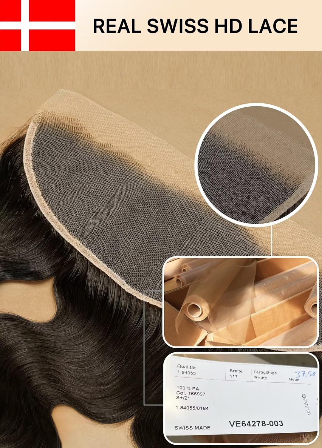 The closure features 0.10mm ultra-thin Swiss real HD lace.